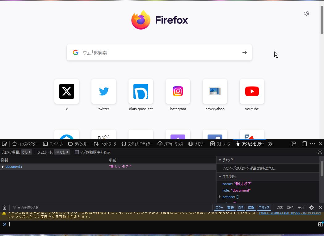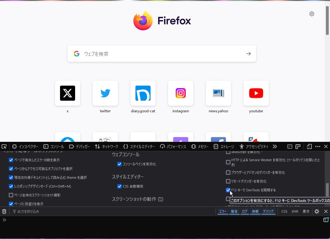 firefoxで、開発者ツール(デベロッパーツール)が意図しない時に